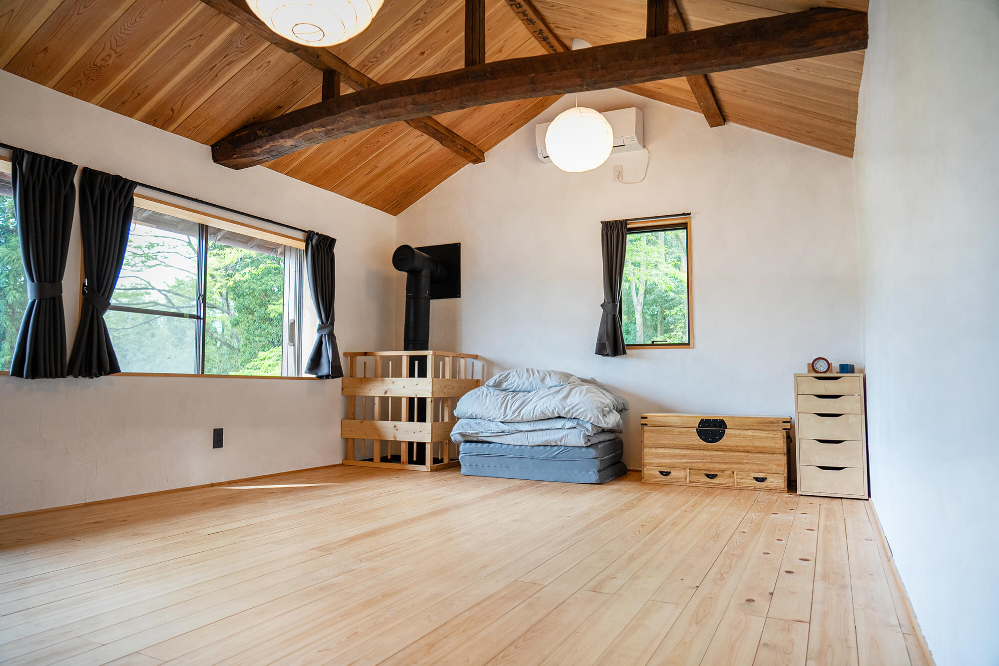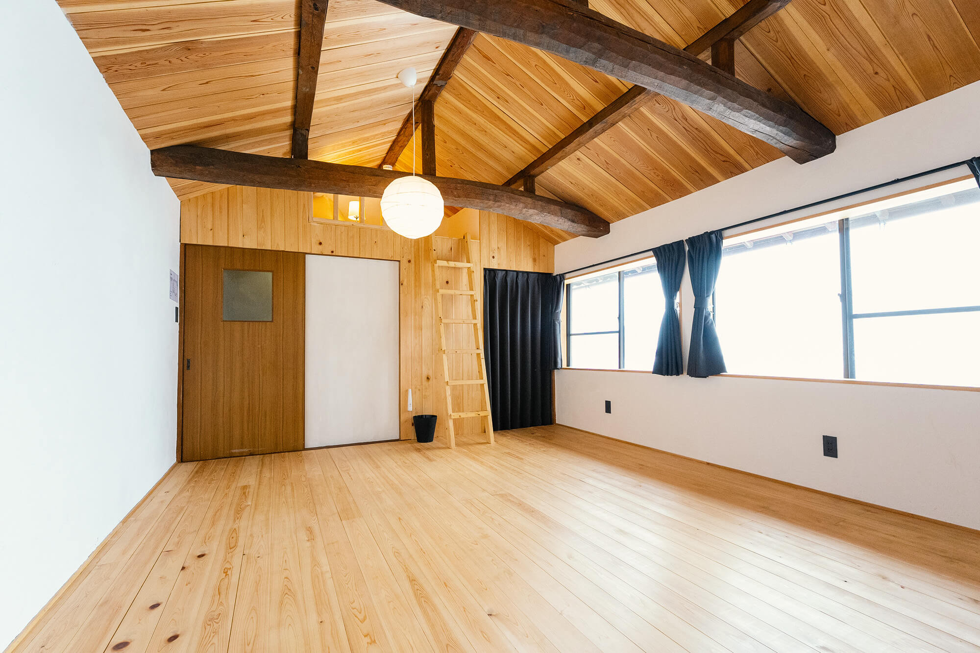 2階は、高い天井と木の温もりが心地よく開放感のある洋室。大きな窓から差し込む自然光が気持ちいい!