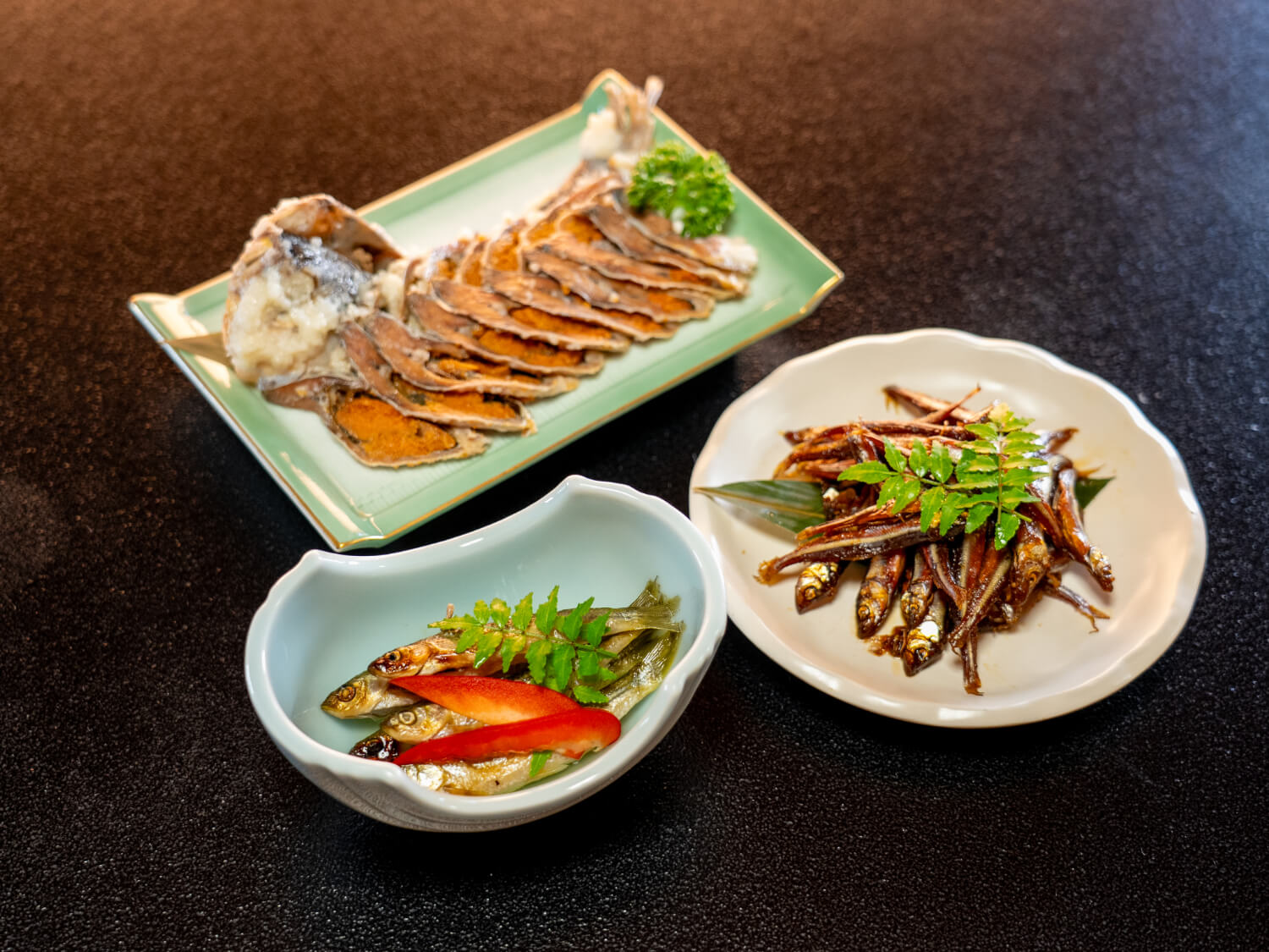 ほかにもビワマスのお刺身、小鮎やホンモロコの天ぷらなどが、湖魚料理の入り口として人気。